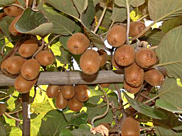 “鄂獼猴桃3號(hào)”是湖北省農(nóng)業(yè)科學(xué)院果樹茶葉研究所選育的早熟、黃肉、無(wú)毛獼猴桃新品種,2004年6月通過(guò)湖北省農(nóng)作物品種審定委員會(huì)審定。特征特性該品種多年生枝光滑無(wú)毛、黑褐色,抽生的新梢為黃綠色,密被黃色短茸毛。葉片近扇形,成熟葉片為綠色、較大?;▎紊㈦p生或3生,花冠較大,花瓣多為5枚、形狀呈杯形,萼片5~6枚。果實(shí)長(zhǎng)圓柱形、整齊美觀,沒(méi)有明顯的縊痕,扁平果率僅為1.06%,平均單果重85克,單果重155克。果皮暗褐色、光滑,果皮有小而少、不明顯的果點(diǎn),果底平,果柄細(xì)長(zhǎng)。果肉黃色、葉液多、有清香味,風(fēng)味酸甜,可溶性固形物含量為14.5%~15.5%,維生素C含量為934微克/克。生長(zhǎng)勢(shì)強(qiáng),枝條粗壯充實(shí),節(jié)間中長(zhǎng),以中、長(zhǎng)果枝結(jié)果為主。4年生樹平均株產(chǎn)11.9公斤,667平方米(1畝)產(chǎn)量可達(dá)1000公斤。果實(shí)于9月上中旬成熟。栽培技術(shù)要點(diǎn)宜選擇土壤疏松肥沃、水源充足、背風(fēng)向陽(yáng)、灌溉方便的地方建園。選配適宜授粉樹如“金雄3號(hào)”,配置比例為5~8∶1。及早疏花疏果,短果枝留1~2個(gè)果,中果枝留3~4個(gè)果,長(zhǎng)果枝留4~5個(gè)果。成齡獼猴桃果園,一般每年施肥3次.....