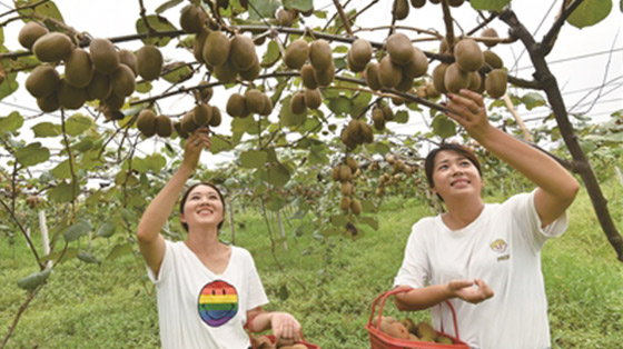 9月1日,隆回縣金石橋鎮(zhèn)東紅獼猴桃專業(yè)合作社果園里,游客正在體驗采果樂趣。近年來,該縣采取“公司+合作社+基地+貧困戶”模式,種植優(yōu)質(zhì)獼猴桃2萬多畝,全縣有400多戶貧困戶參與種植務(wù)工和銷售,實現(xiàn)脫貧増收。