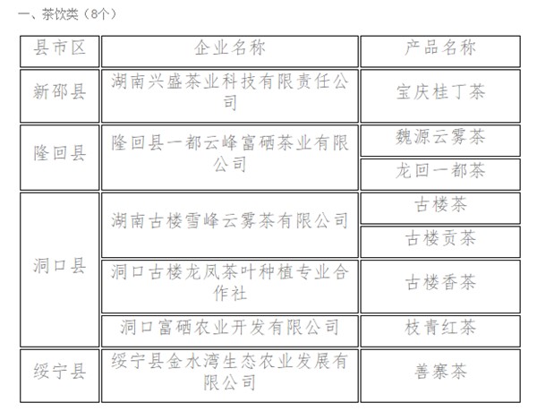 “邵陽紅”優質農產品名錄(第一批)(37個,排名不分先后)