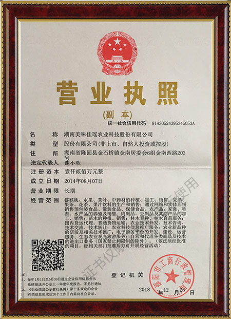 公司資質 - 湖南美味佳瑤農業科技股份有限公司掃一掃咨詢微信客服