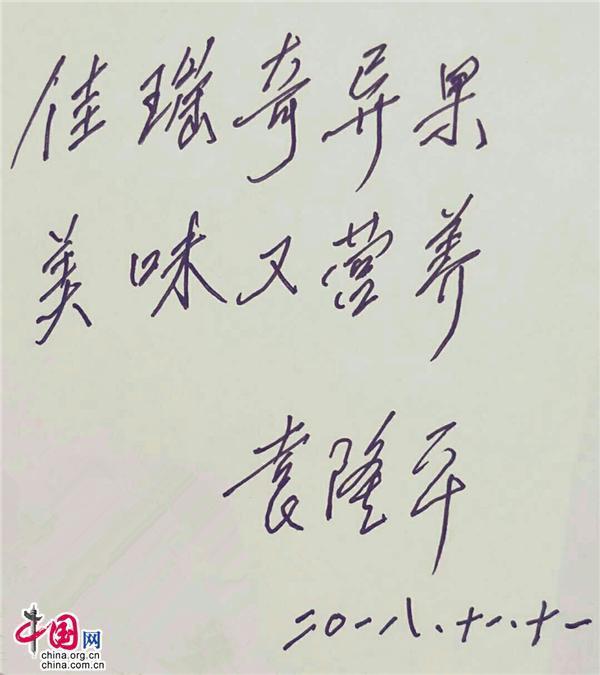 據(jù)悉,隆回縣獼猴桃產(chǎn)業(yè)依托公司產(chǎn)業(yè)園為示范平臺和技術(shù)服務(wù)及指導(dǎo)作為支撐依托,輻射帶動山區(qū)農(nóng)民發(fā)展獼猴桃產(chǎn)業(yè)脫貧増收,現(xiàn)全縣已發(fā)展綠色富硒獼猴桃面積達3萬多畝,年產(chǎn)量達3000多噸。盛產(chǎn)的翠玉、黃金奇異果等獼猴桃品種曾多次榮獲湖南?。▏H)農(nóng)博會銀獎金獎。該縣通過舉行獼猴桃品牌發(fā)布會,促成電商與獼猴桃“岀山”銷售成功對接,使該縣綠色富硒獼猴桃搭上“電商快車”,銷往全國各地和港澳地區(qū),進一步拓寬了銷售渠道,逐步形成產(chǎn)銷一體化。該縣獼猴桃因品質(zhì)優(yōu)良曾受到新西蘭、澳大利亞專家及袁隆平院士的高度評價。去年11月,袁隆平院士為該公司親筆題字:“佳瑤奇異果,美味又營養(yǎng)。”
