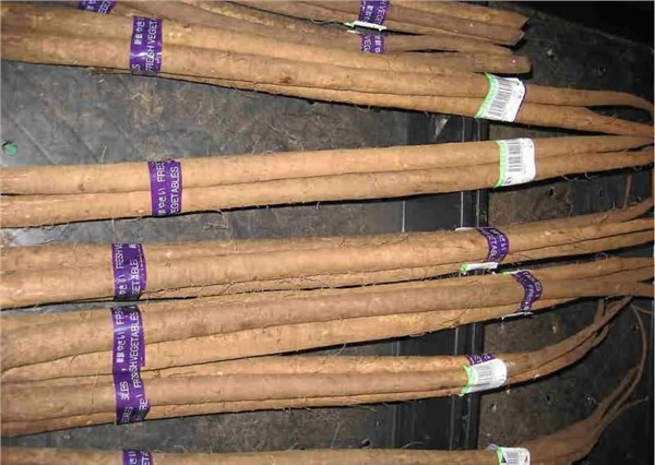 [1]牛蒡(學(xué)名:Arctium lappa L.),又名:惡實、大力子、東洋參,又名東洋牛鞭菜等。一千多年前日本從中國引進(jìn)并改良成食物,在日本占據(jù)臺灣時曾在臺南要求當(dāng)?shù)剞r(nóng)民大量種植,主要原因是臺南有曾文溪畔松沙土質(zhì)、北回歸線氣候加上有名阿里山延脈造就其當(dāng)?shù)嘏]虻锰飒毢竦恼滟F性,臺灣已作為蔬菜食用多年,有牛蒡發(fā)祥地之稱。屬桔梗目,菊科二年生草本植物,基生葉寬卵形,長達(dá)30厘米,寬達(dá)21厘米,頭狀花序多數(shù)或少數(shù)在成傘房花序或圓錐狀傘房花序,瘦果倒長卵形或偏斜倒長卵形,兩側(cè)壓扁,淺褐色。花果期6-9月。主要分布于中國、西歐、克什米爾地區(qū)、歐洲等地。中國牛蒡的種植主要產(chǎn)地分布于江蘇省和山東省,江蘇省的徐州豐縣、沛縣,山東省的蒼山種植歷史悠久,面積規(guī)模較大。[1]